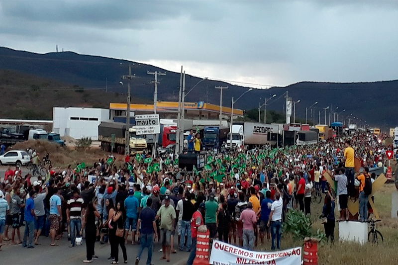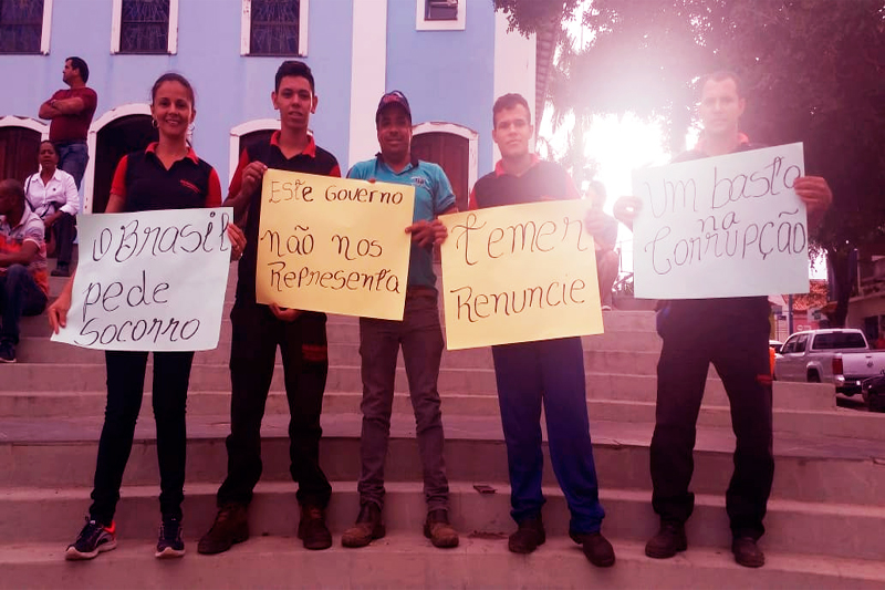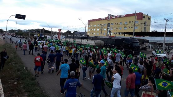 Brumado assistiu no final da tarde desta segunda-feira (28) uma passeata em prol do movimento dos caminhoneiros organizada pela CDL e pelo Sindicato dos Comerciários, a qual percorreu algumas vias do cento da cidade e culminou na rotatória das BR-030 e BA-262, onde um grande número de populares aderiu à manifestação. Tendo como mote os impostos abusivos e corrupção desenfreada, cerca de 2 mil pessoas compareceram e, segundo os organizadores, o movimento superou as expectativas e pode ser considerado o maior da história sem ter tido um cunho político, ou seja, foi uma manifestação legítima, que mostrou que uma consciência cidadã está sendo formada, a qual foi provocada pela forte crise que se estabeleceu nos últimos dias que mobilizou a nação, fortalecendo ainda mais os movimentos anticorrupção, que é apontada como a principal causa deste momento tão preocupante por que passa a nação. Representantes do Sindicato dos Comerciários e do CDL se pronunciaram contra o sistema vigente que se mostra cada vez mais enfraquecido diante de uma insatisfação cada vez mais latente. Os caminhoneiros autônomos que são os responsáveis pelas manifestações em Brumado agradeceram o apoio e garantiram que continuarão o movimento de paralisação, já que as suas principais reivindicações não foram atendidas. Os manifestantes exibiram inúmeras bandeiras do Brasil, o que deu um tom patriota à movimentação. Veja fotos e vídeo da passeata que foi considerada um marco histórico a nível local: