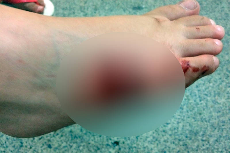 A menina teve um corte profundo no pé e precisou passar por procedimento médico (Foto: Luciano Santos | 97NEWS)