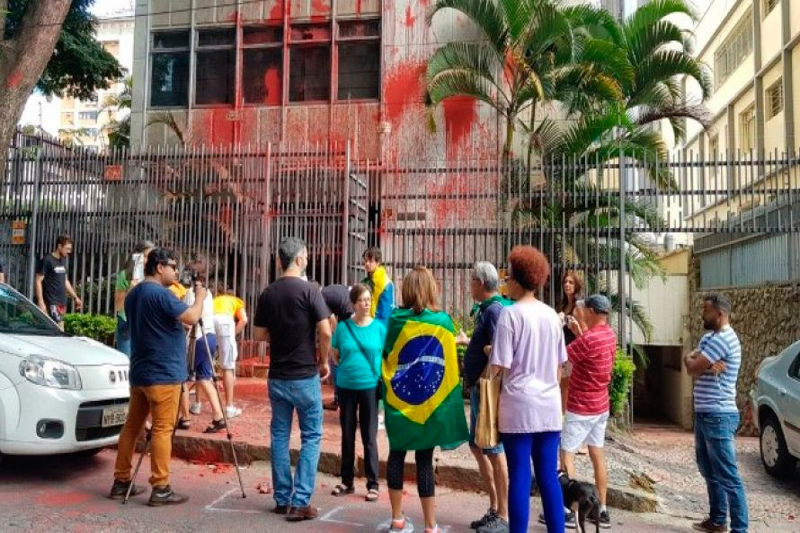 Um movimento de apoio à Cármen Lúcia, presidente do STF (Supremo Tribunal Federal), reuniu dezenas de pessoas na manhã deste sábado (7) para limpar a frente do prédio onde a ministra tem um apartamento em Belo Horizonte. Organizado pelo MBL e pelo Partido Novo, mas também com a presença de voluntários e moradores, o ato promoveu ainda a entrega de flores à ministra. Em frente ao prédio no bairro Santo Agostinho, região nobre da capital mineira, foram colocadas faixas, flores, balões e uma bandeira do Brasil. O ato mobilizou senhoras com seus cachorros, crianças e motoristas que passavam buzinando em apoio. Na calçada, manifestantes usavam equipamentos de hidrojateamento para limpar a tinta vermelha. Parte dos equipamentos foi emprestada por uma empresa de limpeza profissional contratada pelo subsíndico do condomínio. Não está claro se os custos serão pagos pela ministra ou divididos entre os moradores. Raquel Riedel, gerente da empresa, explicou que o trabalho profissional só deve começar mesmo na segunda-feira (9), pois a aglomeração de pessoas não permite a limpeza da fachada neste momento. Será feita uma espécie de rapel que pode durar dias, segundo ela. A tinta foi avaliada como de difícil remoção. Na tarde desta sexta (6), militantes do MST e do Levante Popular da Juventude fizeram um "escracho" no local, lançando balões de tinta vermelha na fachada do edifício e pichando a calçada. O subsíndico, Luiz Assis, relatou que os moradores ficaram tensos no momento do escracho e temeram uma invasão. Ele chamou a polícia. "Foi um ataque de vândalos relâmpago, inclusive com batucada, teve até Carnaval. A polícia estava presente e não prendeu ninguém", diz. Assis afirmou ainda que a ministra mostrou preocupação com a segurança dos moradores. "Não cabe isso em qualquer ideologia. Existem outras sete famílias que moram aqui", completou. A administradora de empresas Clarissa Vaz, 50, ficou sabendo do movimento e trouxe flores amarelas que, segundo ela, representam fortuna. "É pela coragem dela junto ao Supremo. As flores são gentileza, beleza, renovação, que é o que o país precisa."