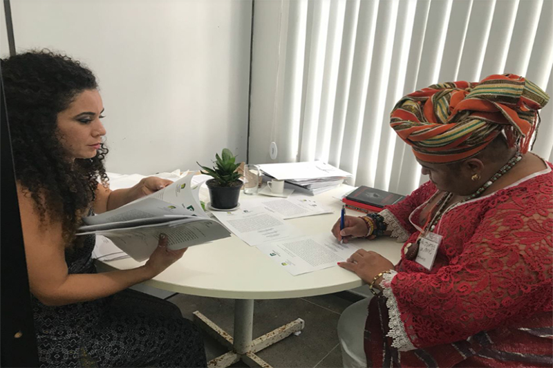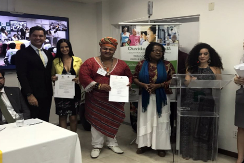 Em 19 de outubro de 2017 foi realizado no auditório do SEMAC a eleição dos dois membros que irão representar Brumado no Grupo Operativo Estadual, tendo sido escolhidos a estudante de Direito, Maria Aparecida, eleita titular e o sacerdote Dionata de Xangô, o suplente., também é estudante de Direito, além de ser técnico de enfermagem e formado em Assistência Social Nesta última quinta-feira (15), os dois representantes brumadenses, participaram do VI Diálogo Interinstitucional da Ouvidoria Cidadã, onde foi realizada a cerimônia de posse de todos os membros eleitos dos municípios baianos que possuem comarcas com a presença da Defensoria Pública que irão compor o Grupo Operativo da Ouvidoria Cidadã para o biênio 2018-2020. O evento foi realizado na Escola Superior da Defensoria e integrou as atividades desenvolvidas pelo órgão auxiliar, no sentido de fortalecer a democracia participativa e aproximar os usuários com os serviços da Instituição. Após a cerimônia de posse, todos foram participar de uma solenidade na ALBA – Assembleia Legislativa da Bahia, na qual o defensor público estadual Cleriston Cavalcante foi receber a Comenda 02 de Julho. Durante o cerimonial todos os presentes saudaram e deram uma salva de palmas em homenagem aos operadores recém empossados, o que foi um momento de muita emoção.