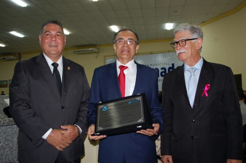 Em sessão solene realizada na última sexta-feira, 20 de outubro, a Câmara Municipal de Vereadores de Brumado entregou ao Desembargador Lourival Trindade o Título de Cidadão Brumadense, de autoria do presidente da Casa Legislativa, vereador Leonardo Quinteiro Vasconcelos, em homenagem aos serviços prestados em prol do município e para toda Bahia. A mesa dos trabalhos foi composta pelo presidente do legislativo brumadense, vereador Leonardo Quinteiro Vasconcelos; o secretário de Agricultura do Estado Vitor Bonfim; o prefeito Érico Cardoso, Érico Cardoso; o prefeito de Ituaçu, Adalberto Luz; o prefeito de Brumado, Eduardo Lima Vasconcelos; a prefeita de Aracatu, Lêda Matias; o comandante da 34ª CIPM, Major Adriano Souza Dias; o advogado e vereador do município de Rio de Contas, Vinícius Costa Soares; a assessora jurídica da Câmara de Vereadores de Brumado, Abiara Meira Dias; a juíza Márcia Abreu; o presidente da OAB Subseção Brumado, Osvaldo Laranjeiras; a juíza Adriana Luíza; e o vice-prefeito de Brumado Édio Pereira. A Lira Ceciliana brumadense fez a abertura da sessão com a execução do Hino Nacional com uma apresentação muito bonita, agradando a todos os presentes e destacando a sua importância cultural e histórica para o município. Uma surpresa não esperada pelo homenageado foi realizada pelo advogado e vereador do município de Rio de Contas, Vinícius Costa Soares que fez a entrega de título de Cidadão Rio-contense ao Desembargador destacando a sua trajetória de vida simples e de tamanha competência. Dando prosseguimento à sessão o autor da indicação ao Título de Cidadão Brumadense ao Desembargador Lourival Trindade, o presidente do Legislativo de Brumado, vereador Léo Vasconcelos em seu pronunciamento destacou que o Desembargador tem uma história de vida louvável, com conduta ética e moral, se destacando em toda a Bahia pela humildade e afinco nas suas atividades como homem público, sendo merecedor do reconhecimento como cidadão brumadense, pelos inestimáveis serviços prestados ao município. A palavra foi franqueada aos convidados, que foram unânimes em dizer da importância do reconhecimento do trabalho do Desembargador, que em toda sua história de vida, ocupando cargos de grande importância e relevância, não perdeu sua essência, servindo e exemplo para uma grande maioria. Ao usar a Tribuna Livre da Câmara para fazer seu discurso de agradecimento o Desembargador Lourival Trindade falou da sua satisfação, alegria e emoção por receber a outorga concedida pelo município de Rio de Contas e Brumado, cidades que ele tem um grande apreço. “Estejam certos, distintos parlamentares, a homenagem a mim concedida ficará para sempre na memória e os meus agradecimentos neste momento serão perpetuados”. Finalizando a sessão solene foi servido um coquetel a todos os presentes.