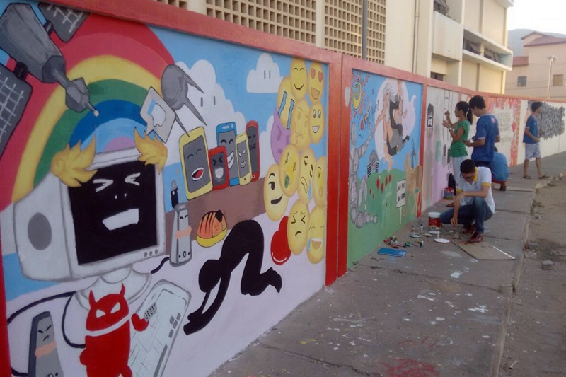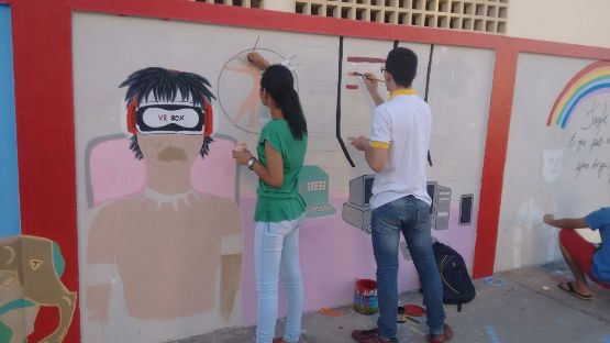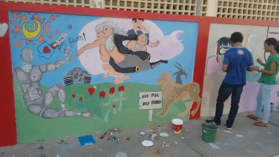 Alunos dos Cursos de Comércio, Logística e Contabilidade do CEEP expõem em desenhos geométricos a arte moderna, com diversos temas que abordam desde a violência da mulher, o desmatamento de árvores nativas de nossa região e o desenvolvimento das novas tecnologias. A estudante de comércio Luane Lima, de 16 anos fala do tema que sua turma foi selecionada a expor. Em forma de desenhos, a equipe abordou a "Violência contra a mulher". A aluna diz que a arte é uma forma de expor os maiores sentimentos, "o nosso tema, Violência contra a Mulher, veio de forma a dar um tapa na cara da sociedade, porque com tantas informações que chegam ao nosso conhecimento, é inadmissível, que ainda existam pessoas que agridem, não só fisicamente, como verbalmente, as mulheres do nosso país e até do mundo. Esses desenhos abrem também uma porta para que a sociedade possa enxergar o nosso protesto". Flávio Vinícius, de 18 anos, está cursando o 4º ano de logística e sua equipe ficou com o tema, Meio Ambiente, no qual eles abordaram desenhos de nossa caatinga, ressaltando que árvores como o juazeiro e o umbuzeiro estão ficando cada vez mais extintos da nossas matas. "A nossa sociedade foi mal instruída na questão do meio ambiente, onde vivemos um completo absurdo, pois, temos um pensamento pessoal, ao invés de coletivo. Por exemplo, temos o costume de em nossas casas de jogar papeis e materiais recicláveis no lixo, mas basta sairmos nas ruas, que um pequeno papel de bala é dispensado no chão, ou até mesmo aquela latinha de refrigerante ou água mineral. Ou seja, porquê em nossas casas, preservamos o nosso ambiente, e na rua não temos o mesmo pensamento? Então esses desenhos são a nossa expressão para que a sociedade venha a refletir e não admirar os trabalhos como de artistas, mas sim, para que abra um leque de pensamentos, do quão é importante preservar nossa fauna". Já o estudante de Contabilidade, Cleiton Iago de 19 anos, expôs o tema, Tecnologias, que abordou, desde o início, o seja, o surgimento do computador, até as novas tecnologias, como celulares, tabletes, notebooks e outros dispositivos. Em seus desenhos, ele e seus colegas, buscaram mostrar para a sociedade que o mundo da informática pode ser usado tanto para o bem, como para o mau. "Novas tecnologias sempre foram e serão positivas para a sociedade de um modo geral, mas, temos que saber usá-las, a exemplo disso são as redes sociais, elas podem ser usadas não só para o entretenimento, como para os estudos, tirando dúvidas de novos temas e conhecimentos, mas, podem ir também no sentido contrário, como os "fakes" e a pornografia. No meu ponto de vista o nosso país ainda não está preparado para combater este tipo de ação, mas nós mesmos, principalmente os jovens, podemos acabar com esse lado negativo da informática, sempre lembrando que o lado bom disso tudo é que as novas tecnologias vêm fazendo com que o mundo descubra cada vez mais, novas maneiras de avançar, tanto no campo da medicina como nos avanços da robótica." Os temas e a forma de representar a arte nos muros da escola foi uma iniciativa da professora de Matemática, Sandra Mara, que acredita no potencial de cada um, de forma que nas pinturas, sempre utilizando as formas geométricas, cada turma expresse os seus pensamentos nos temas abordados. Veja fotos: