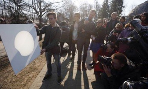 Técnica de projeção permite a observação segura do eclipse solar Foto: Sergei Grits / AP