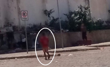 Cenas urbanas: Menino de 11 anos é visto fumando crack no estacionamento da Cesta do Povo em Brumado
