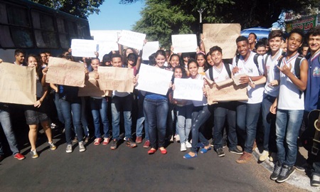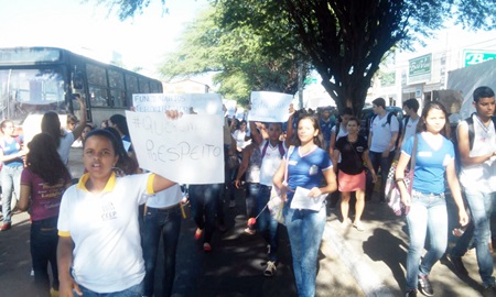 Sob o lema “Sem Comida e Sem Limpeza, não Funciona a Cabeça” um grande número de alunos das escolas estaduais de Brumado promoveram, na manhã desta sexta-feira (20), uma passeata de protesto que objetivou chamar a atenção do Governo do Estado para que se efetive com urgência uma solução para o impasse dos funcionários terceirizados, os quais estão com cerca de 4 meses de salários atrasados e, por causa disso, estão vivendo um drama, sendo que alguns até já foram despejados de suas casas devido ao atraso no aluguel. A situação se agravou muito nos últimos dois meses, o que vem prejudicando o ensino oferecido nas escolas estaduais, já que não está sendo feita a manutenção da limpeza e nem oferecida a merenda escolar, o que, inclusive foi o mote do protesto. A passeata partiu da frente do Colégio Estadual Getúlio Vargas e os alunos percorreram várias ruas e avenidas da cidade, exibindo cartazes e gritando palavras de ordem (foto abaixo). Eles esperam que a ação tenha um rápido resultado, já que o ano letivo já está prejudicado com as sucessivas paralisações.