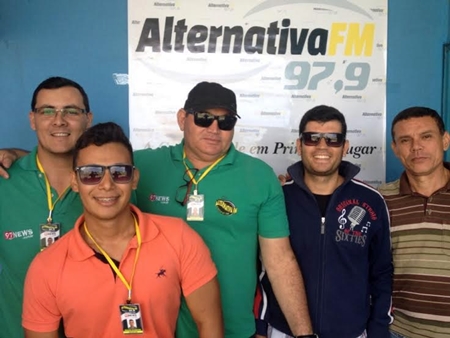 (Da esquerda para à direita) Luciano Santos, Maicon Shyneider, Kaká, André Luiz e Paulinho (Foto: 97NEWS) O Intermunicipal 2015 vai começar para a Seleção Brumadense de Futebol e a estreia será fora de casa contra a forte equipe de Itapetinga. Com esperanças renovadas a equipe brumadense espera fazer a melhor da campanha de sua história, já que agora o fator mando de campo será um componente importante deste objetivo, pois o Estádio dos Prazeres, que será inaugurado no próximo sábado (22) reunirá todas as chances para uma ótima participação, quem sabe até coroada com o título. E você torcedor brumadense ficará a par de tudo por meio da 97FM que estará fazendo a transmissão da partida que acontecerá às 15 horas de hoje (16). Formada pela voz atômica de Carlos Silva “Kaká” - que estará fazendo a narração do confronto - com apoio dos repórteres de campo, André Luiz e Maicon Scheyder e na técnica o sempre competente Luciano Santos e na coordenação e comentários o experiente Paulinho, a equipe esportiva da 97FM vai dar mais uma vez um show de transmissão. Então ligue o seu radinho torcedor e sintonize a 97,9 e torça pela sua seleção.
