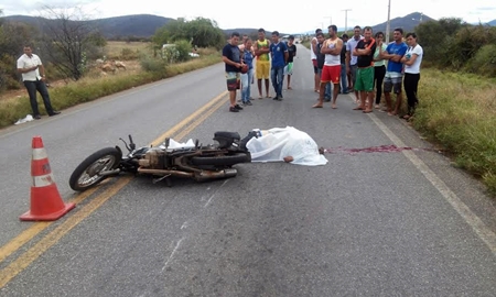 O aposentado morreu no local (Foto: Marcos Paulo / 97NEWS) Um aposentado, de prenome Ladulfo, acabou morrendo em um acidente de motocicleta na manhã desta segunda-feira, dia 17. O fato aconteceu na BA-148, nas proximidades da Comunidade de Lagoa Funda. Segundo informações de testemunhas à reportagem do 97NEWS que esteve no local, o aposentado perdeu o controle da motocicleta que estava conduzindo, indo ao chão e sendo arrastado por cerca de 4 metros. Ele teria passado por cima do quebra-molas antes de perder o controle da moto. Os motivos do acidente ainda são desconhecidos, mas desconfia-se que ele possa ter tido um mal súbito e, com isso, acabou se acidentando. Ele morreu na hora, provavelmente devido a um traumatismo craniano, pois o capacete acabou saindo e o impacto no solo foi muito forte.