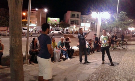 O movimento acabou reunindo um número muito baixo de participantes (Foto: Reprodução Whatsapp) Que o brumadense não é um povo dado aos protestos isso é uma constatação histórica, mas, quando esses protestos assumem cunho político ou partidário, fora da época das eleições, a participação popular é mais baixa ainda. Isso ficou comprovado neste domingo, dia 16, onde foi organizado na cidade o movimento “Vem pra Rua”, que acabou se tornando um fiasco, com uma baixíssima participação popular. Mesmo sendo garantido pelos organizadores que o protesto não teria uma vinculação política, a população não entendeu dessa forma e não compareceu ao manifesto, que fez uma grande convocação pelas redes sociais, mas, que, segundo testemunhas que entraram em contato com a reportagem do 97NEWS, teve apenas a participação de cerca de 23 pessoas concentradas, mas, mesmo assim foram feitos discursos inflamados contra o governo Dilma. O comparecimento de lideranças políticas no movimento, que inclusive fizeram uso da palavra, serviu, para muitos para comprovar o cunho político do manifesto. Segundo os organizadores, mesmo com a baixa participação, o protesto foi avaliado de forma positiva, já que o recado foi dado, pois o objetivo maior é mobilizar a sociedade num grande movimento contra a corrupção. Já para os críticos o movimento foi avaliado como um fracasso e só teria sido melhor se tivesse sido convocado pela classe estudantil, já que aí teria uma participação maior de pessoas, como aconteceu em movimento anterior, que conseguiu reunir cerca de 1,5 mil pessoas durante as manifestações que aconteceram antes da copa do mundo de 2014.