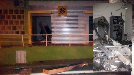 O terminal ficou destruído com a ação implacável (Foto: Leitor Whatsapp) A cidade de Palmas de Monte Alto, mais especificamente a Praça da Bandeira, foi palco de mais uma ação no “novo cangaço”. Segundo informações colhidas pela equipe de reportagem do 97NEWS, cerca de 08 elementos com armas de grosso calibre chegaram por volta das 02h20m desta madrugada (11) em dois veículos, uma Parati e um Fiat Palio, efetuando vários disparos, inclusive contra a delegacia da cidade, atingindo uma viatura que estava na porta.. Eles fizeram a sua operação com foco no terminal do Banco do Brasil, que foi explodido. Os bandidos levaram uma quantia em dinheiro não revelada e, na hora da fuga, efetuaram novos disparos, desta feita contra um escritório de advocacia e uma viatura que estava no local. Eles fugiram em direção de Sebastião Laranjeira e várias equipes da CIPE – Sudoeste foram no encalço da quadrilha.