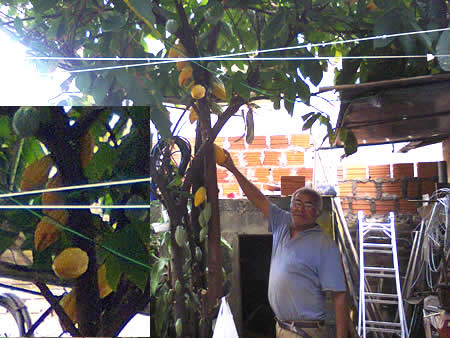 Mesmo que seja apenas um pé de cacau, senhor João tem o privilégio e o prazer de mostrar para os amigos, que ele também tem em sua casa um pouco do produto que já decidiu a vida da Bahia politicamente e economicamente.