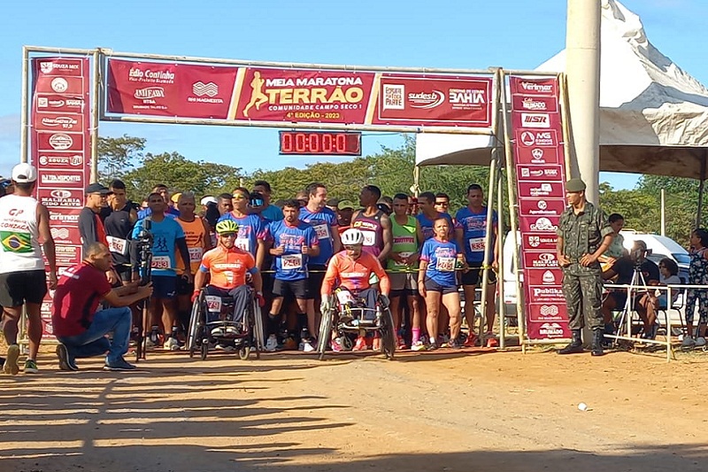 A 4ª edição da Meia Maratona do Terrão aconteceu neste domingo (22), na comunidade do Campo Seco, zona rural de Brumado. A largada ocorreu às 07h da manhã com aproximadamente 448 atletas inscritos da região e de outros municípios da Bahia. Idealizada pelo maratonista Sérgio Pinheiro, a Meia Maratona 2023 reuniu atletas, corredores amadores e iniciantes, nas modalidades solo de 5 km e 21 km. Nesta edição, houve também a inclusão de atletas cadeirantes. Há quatro anos, a meta principal do evento esportivo é estimular a prática da atividade física. É a única corrida da região que possibilita o atleta a correr em um ambiente de caatinga, com terra 'batida', areia e pedras, além disso, o calor do sertão. Para confirmar o prestígio do evento além dos inscritos de Brumado, atletas dos municípios de Caetité, Livramento de Nossa Senhora, Malhada de Pedras, Ibotirama, Vitória da Conquista e outros municípios também se inscreveram.