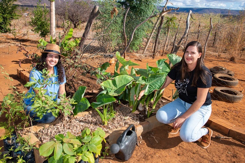 Ela produz também, em seu canteiro, outros produtos como couve, coentro, alface, beterraba, cenoura. Mas o que chama a atenção mesmo é a plantação, toda feita de forma orgânica, de abóbora e mamão, que viraram o carro chefe de sua produção. Além de inserir alimentos de qualidade em suas refeições e fazer a própria ração para os animais, o excedente que é cultivado por Gleide é transformado em renda. “Vendo cerca de 25 dúzias de ovos por mês para o município de Vitória da Conquista e a carne [das aves] na região de Belo Campo. Já cheguei a mandar 45 dúzias. Com as PANC melhorou a nossa alimentação e também a dos animais. Tinha coisa que a gente comprava fora e hoje planta aqui. Já a abóbora vendo cerca de 1.500 quilos e o mamão 500 quilos por mês”, comemora Gleide. A venda dos alimentos é realizada por meio do Programa Nacional de Alimentação Escolar (PNAE) e para a rede Bem Viver, de Vitória da Conquista. Com a renda, Gleide comprou três vacas de leite e já faz novos planos para melhorar e aumentar a produção. “Quero seguir avançando. É muito bom poder viver e comer daquilo que a gente produz. Agora, já tenho o meu próprio leite, uns 22 litros por dia, consumo e ainda tiro um dinheirinho com a venda dele aqui mesmo na comunidade. Estou fazendo uma nova plantação de palma e uma capineira, para ajudar na alimentação das vacas, e ainda quero fazer muito mais”.