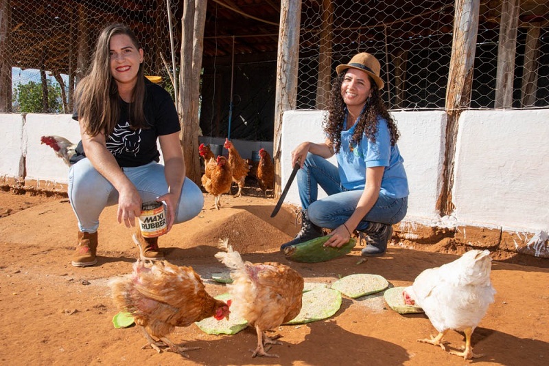 Com o Serviço de Assistência Técnica e Extensão Rural (ATER) ofertado pelo Governo do Estado, por meio do projeto Bahia Produtiva, executado pela Companhia de Desenvolvimento e Ação Regional (CAR), famílias de comunidades rurais de todo o estado passaram a produzir e comercializar alimentos saudáveis. É o caso de Gleide de Oliveira, moradora da comunidade Bomba, no município de Belo Campo, no Sudoeste baiano. “Minha propriedade não tinha produtividade nenhuma. Eu só tinha sete galinhas e não tinha plantação. Eu não tinha muita informação, conhecimento. Com a chegada do Bahia Produtiva isso mudou. Não sabia que seria tão bom para mim. Chegou o projeto de galinha caipira e a assistência técnica e eu me interessei, comecei a consumir produtos mais saudáveis e ainda a ter uma renda, que antes não existia. Hoje, estou com cerca de 100 aves”. Com as orientações técnicas, a agricultora aprendeu a criar as galinhas com o manejo correto e já produz também a alimentação das aves. “Antes, minhas galinhas ficavam no mato, comiam qualquer coisa, bicho matava. Agora, elas ficam em um local adequado. A ração eu produzo com palma, maniva e moringa, que aprendi a cultivar, o que diminuiu meu custo na alimentação desses animais, em cerca de 50%”, ressalta Gleide. Entre os diversos cultivos que Gleide têm em sua propriedade e que servem não só para a alimentação animal, mas também para o consumo próprio, estão as plantas alimentícias não-convencionais (PANC): taioba, ora-pro-nóbis e língua de vaca, utilizadas em suas refeições.