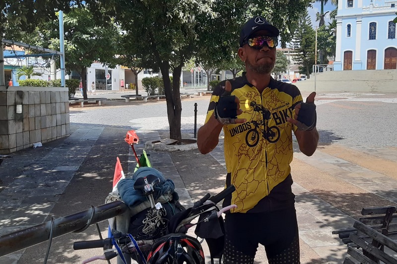 O ciclista baiano José Miguel Ferreira dos Santos, 56 anos, mais conhecido como "Flecha", passou pela cidade de Brumado na última terça-feira (1º). Há cerca de 1 anos e quatro meses ele também esteve em Brumado. Durante esses meses, Flecha passou por vários Estados, entre eles: Alagoas, Goiás, Mato Grosso, Rio Grande do Sul, Santa Catarina, e este ano, volta a Bahia. De acordo com Miguel, em Maceió, o ciclista teve sua bicicleta e todos os pertences roubados, e contou com a ajuda da população local para ganhar outra bicicleta. "Fui jantar na feirinha da cidade e quando voltei tinham levado a bicicleta e minhas roupas, documentos", disse José Miguel. Segundo ele, uma associação de ciclistas de Maceió fez uma vaquinha para ajudá-lo. "Fui muito bem recebido lá e eles fizeram esta vaquinha quando souberam da minha situação", diz. Flecha já percorreu mais de 30 países em cima de uma "magrela". As viagens fazem parte da sua rotina há 38 anos. Conforme Flecha, já sofreu 11 acidentes e perdeu dois amigos e esposa em uma viagem por Bogotá, capital da Colômbia. "Nessa época perdi amigos e minha esposa em um acidente na estrada, fiquei nove meses hospitalizados e tive fraturas na cabeça e nos membros, mas não desisti", relata.