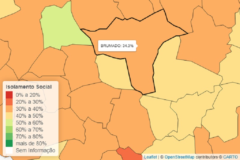 Foto: Reprodução l SEI Os quatro últimos municípios da lista foram Brejolândia, no oeste, com 50,9%; Bom Jesus da Serra, também no oeste, e Paulo Afonso, no norte, ambos com 50,5 e Floresta Azul, no sul, com 50,3%. Brumado teve um dos índices preocupantes, com apenas 34,3% no isolamento social. Em seguida, o município de Livramento de Nossa Senhorra com 35 e Dom Basílio que registrou 35,7%. Já Tanhaçu os dados mostram apenas 39,4%, seguido de Malhada de Pedras com 41,9%. O município vizinho Aracatu, registrou apenas 44,7% de isolamento social. Segundo a SEI, os dados são gerados a partir da geolocalização de dispositivos móveis, como celulares e tablets, pela plataforma InLoco.