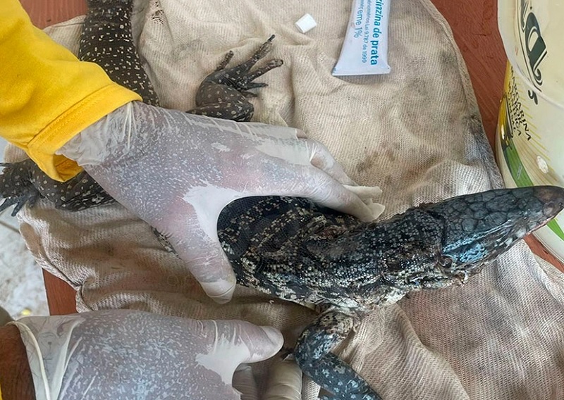 Um teiú ferido foi resgatado na manhã deste domingo (25) pela Brigada Voluntária GASA (Guardiões Ambientais da Serra das Almas), em Livramento de Nossa Senhora, Portal da Chapada Diamantina. O réptil foi encontrado com queimaduras provocadas por um incêndio registrado na noite anterior, em uma área próxima ao Bairro Estocada. De acordo com o presidente da GASA, Antônio Carlos Oliveira, o animal apresentava sinais evidentes de queimaduras e foi imediatamente encaminhado para a sede da Brigada, onde está recebendo os cuidados necessários até sua completa recuperação. “O teiú está sendo monitorado e será devolvido à natureza assim que estiver em condições seguras de reintegração a um ambiente preservado”, afirmou Oliveira. A brigada informou ainda que, nesta segunda-feira (26), está prevista a soltura de outros dois animais silvestres: uma iguana da espécie caraíbas e um escorpião, ambos capturados recentemente em ações de resgate realizadas na zona urbana do município. A GASA reforça a importância da proteção à fauna silvestre e orienta a população a entrar em contato com equipes especializadas sempre que encontrar animais em situação de risco ou deslocados de seu habitat natural.