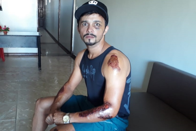Após voltar de uma prova do Campeonato Baiano de Ciclismo, o atleta brumadense Marivaldo Leite, o "Muringa", fazia na noite da última terça-feira (16), um treino regenerativo, que é aquele quando o atleta participa de uma prova muito puxada, ele faz um alongamento de alguns quilômetros. Em entrevista ao 97NEWS, Muringa diz ter vivido novamente. O atleta conta que quando fazia o percurso Brumado à Aracatu, e ao retornar para Brumado, na mesma rodovia, a BA-262, na altura do km 20 na comunidade de Santa Elena, por volta das 18h40 ele foi surpreendido por um motociclista que trafegava pelo acostamento e sem o farol ligado. "Eu fazia aquele trecho da comunidade, quando percebei só levei uma pancada muito forte pelas costas, e não vi a moto se aproximando. Foi quando eu cai na rodovia", relatou Muringa. O atleta ainda conta que já ferido no solo, ele percebeu que o rapaz escondeu a motocicleta no matagal e veio até ele. "Vendo que eu não me levantava, o rapaz encostou e me perguntou se eu estava bem. Disse a ele que estava bastante ferido. Em seguida chegou o patrão dele, e parou um caminhão próximo ao acidente e chamou o SAMU". Muringa ainda descreve que na hora do acidente, o patrão do motociclista relatou aos socorristas apenas que houve um acidente, mas não contou como foi e nem acionou a Polícia Rodoviária Estadual (PRE) para registrar o fato. "Na hora que o SAMU chegou eu fui atendido, e o motociclista também se feriu, sendo nós dois encaminhados ao Hospital de Brumado", comenta.