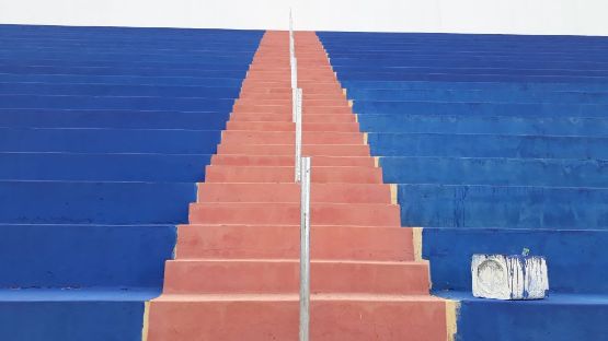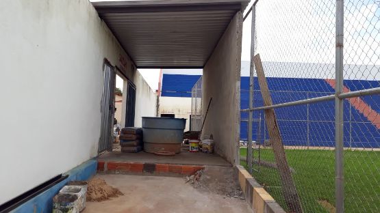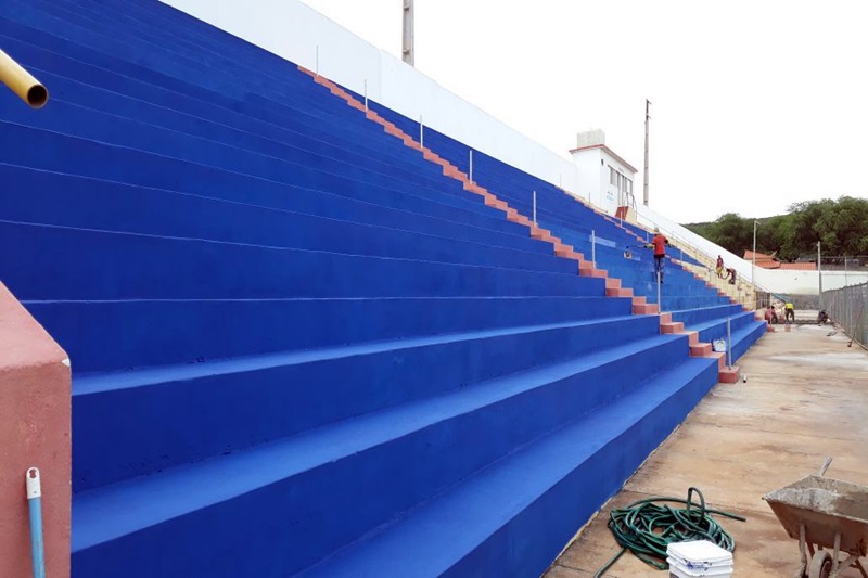 A pintura das arquibancadas, que a partir de agora serão azuis (Foto: Luciano Santos | 97NEWS)